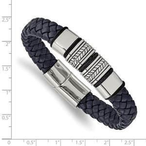 Men's Stainless Steel & Blue Leather Woven Bead Bracelet, 8.25 Inch