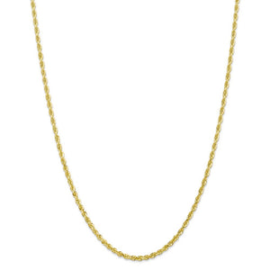 • The radiant luster of 10k yellow gold combined with a diamond-cut finish gives this versatile, spiral rope chain plenty of sparkle. The flexible, solid link design makes it perfect for those looking for a multi-talented accessory. This amazing quadruple link rope necklace is approximately 3mm in width by 24-inches in length and closes with a secure, lobster clasp.