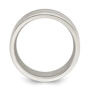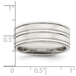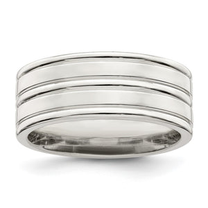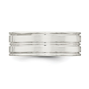 Distinctive style featuring a polished flat profile, multi grooved design, and a standard fit shank created from sterling silver. It is approximately 8mm in width by 2mm in thickness. Suitable for engraving. Made in the U.S.A.
