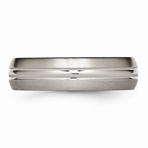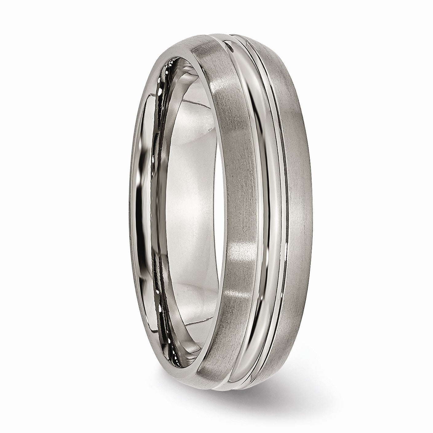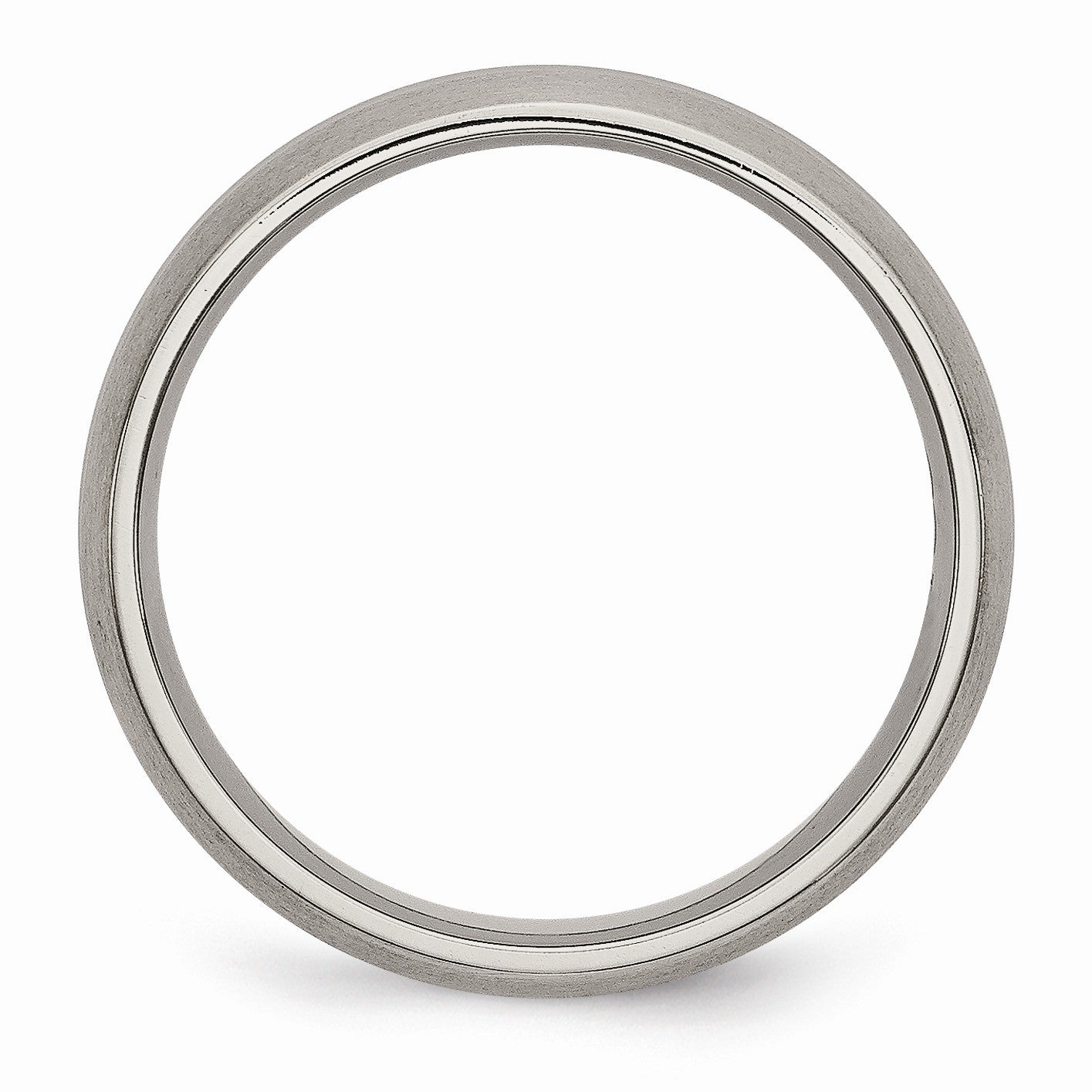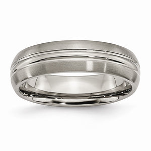 The polished, grooved stripe on this brushed, titanium band combines a trendy look with a contemporary design. This domed, comfort fit band measures 6mm wide and is equally suited for either men or women. Available in whole and half sizes 6-13.