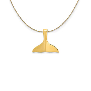 14k Yellow Gold 3D Polished Whale Tail Slide Necklace