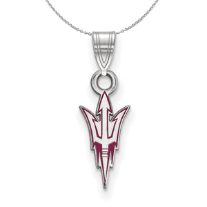 If you are a fan of Arizona State University and the Sun Devils then you need to show your school spirit with this Arizona State University necklace. We are a certified college jewelry retailer and this authentic item is officially licensed. It is crafted from Sterling Silver and crafted by LogoArt in the USA. Includes an 18 Inch, 1.25mm cable chain.