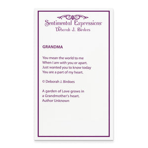 The perfect gift for every Grandmother! This filigree heart is designed from rhodium and gold tone plated sterling silver then outlined with cubic zirconia gemstones. It features an antiqued inscription and a polished finish. The pendant measures approximately 25mm (1 inch) in width by 30mm (1 3/16 inch) in length with the bail. The cable chain is 18 inches long and closes with a spring ring clasp. Each necklace includes a card with the following inspirational poem written by the artist printed in English and Spanish. 'You mean the world to me. When I am with you or apart. Just wanted you to know today You have a part of my heart.'