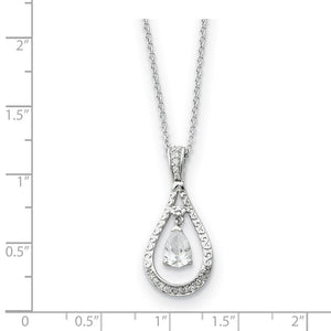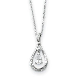 This teardrop necklace is crafted from tarnish resistant rhodium plated sterling silver and clear cubic zirconia. The 1mm width, 18-inch long cable chain closes with a spring ring clasp. The pendant is approximately 13mm (1/2 inch) in width by 28mm (1 1/8 inch) in length. Each piece includes a card with an inspirational message and verse printed in English and Spanish. This Never Forget Tear pendant is worn by those who want to celebrate, cherish or commemorate a special occasion, memory or person. It was designed to make you smile and bring comfort to your heart. Verse: It is right that you feel as I do about you, for you have a very special place in my heart. Philippians 1:7