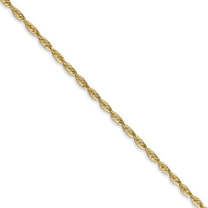1.8mm, 14k Yellow Gold Light Diamond Cut Rope Chain Bracelet, 8 Inch - Black Bow Jewelry Company