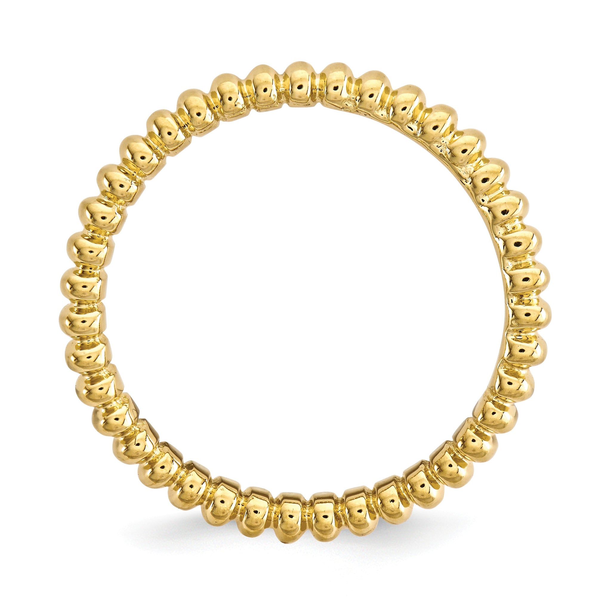 Contemporary geometric style! Create a unique stacked design with curved bands of different colors, patterns and widths. This 2.5mm band fashioned from sterling silver features a polished 14k yellow gold plated finish, a gentle wave shape and a beaded pattern. Wear it alone or stack with other curved bands only.