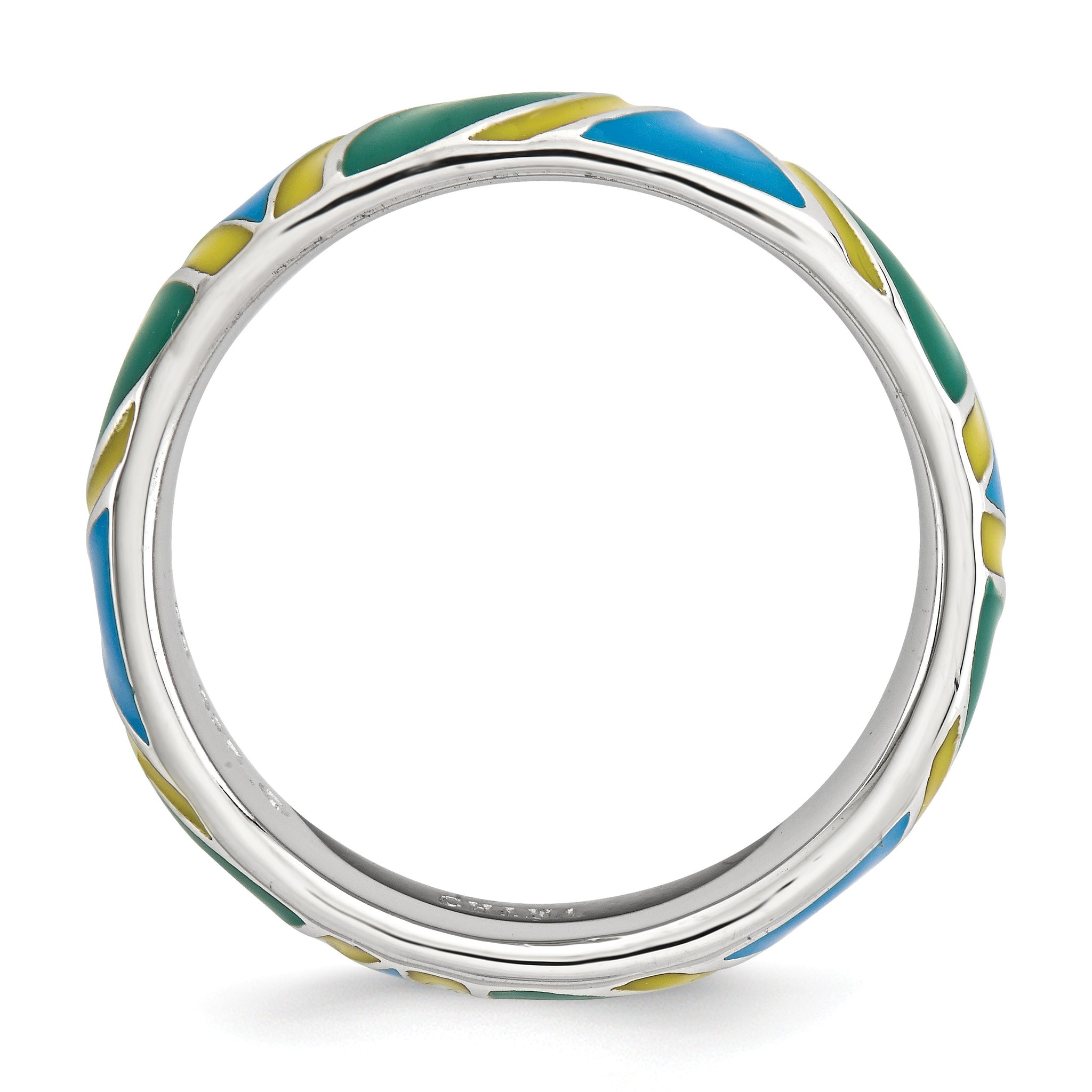 Use enamel bands to effortlessly add a touch of color to any stack collection. Featuring a multicolor design created from green, blue and yellow enamel this 4. Mm sterling silver band is finished with tarnish resistant rhodium plating so it will retain its bright polished luster. Guaranteed to fit together perfectly with all of the mix and match Stackable Expressions rings.