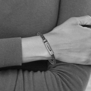 5.25mm Antiqued Stainless Steel Green Leather Woven Bracelet, 8.25 In - Black Bow Jewelry Company