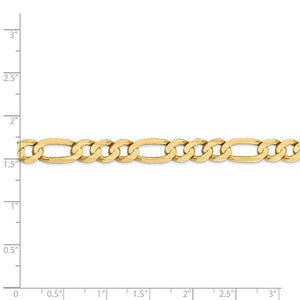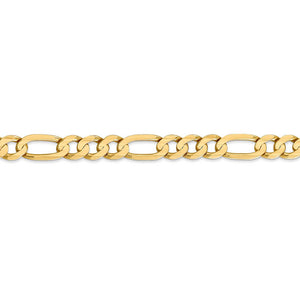 Our 14k yellow gold, open figaro chain closes with a lobster-claw clasp and features a modern concave design that has been hand-polished to ensure a smooth finish. Measuring 6.75mm in width, the solid link construction of this beautiful chain offers versatility along with durability. 7 inches in length.