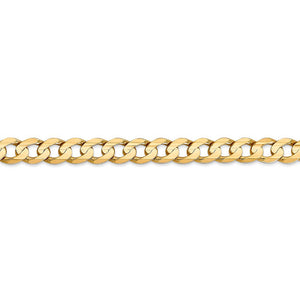 • The open curb links on this classy 6.75mm solid chain are accentuated with a concave design and hand-polished to create a mirror-like finish. Created from 14k yellow gold and includes a secure, lobster-claw clasp. 9 inches in length.