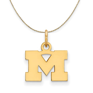 If you are a fan of The University of Michigan and the Wolverines then you need to show your school spirit with this University of Michigan pendant. We are a certified college jewelry retailer and this authentic item is officially licensed. It is crafted from 14k Yellow Gold and crafted by LogoArt in the USA. Includes a 16 inch, 0.8mm 14k yellow gold cable chain with a lobster clasp.