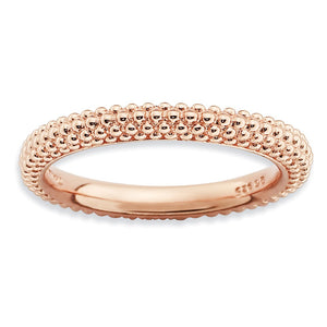 Stackable 14K Rose Gold Plated Silver Domed Milgrain Band