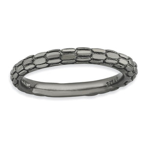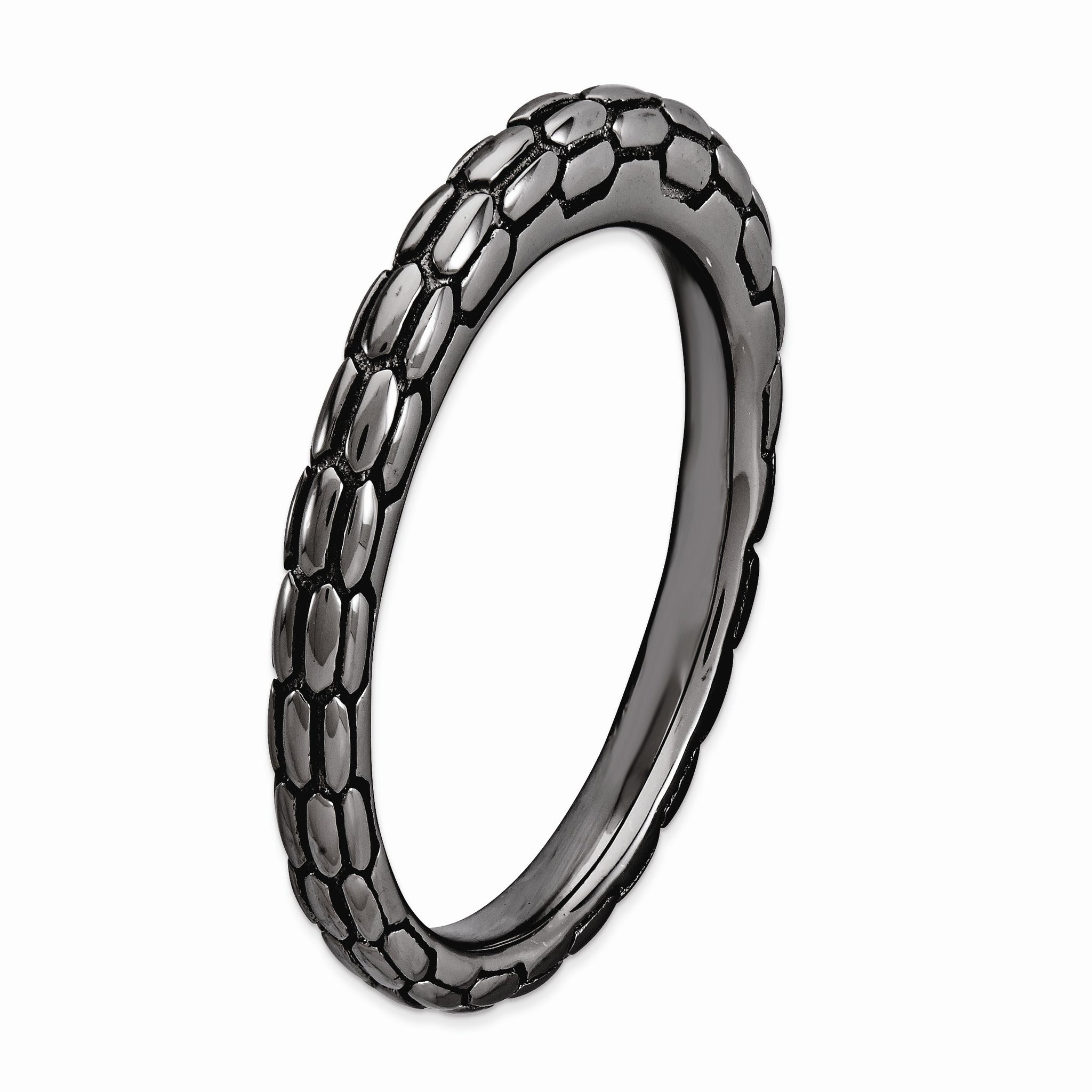 Make it simple and stylish with bands of different textures, finishes, widths and colors! This black ruthenium-plated sterling silver band features a rice patterned dome design with a high polished finish that measures 2. Mm wide. Domed bands are designed to be stacked next to other bands only.