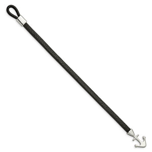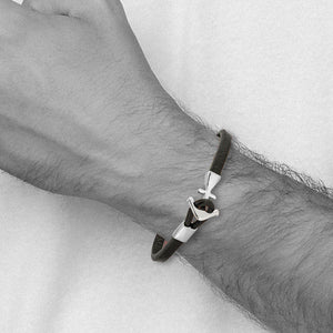 Women's Stainless Steel & Black Leather Anchor Toggle Bracelet, 8 Inch