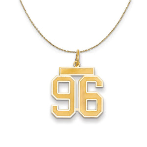Celebrate your favorite sports player, lucky number or milestone date in your life with a prominent 14 yellow gold charm. Each laser-cut satin and polished number is approximately 14mm (9/16 inch) in length, which is finished with a 3mm top bar and classic jump ring. The pendant is . Includes a 30 Inch, 0.8mm 14k yellow gold cable chain with a lobster clasp.