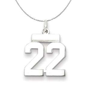 Celebrate your favorite sports player, lucky number or milestone date in your life with a prominent rhodium-plated sterling silver charm. Each polished number is approximately 16mm (5/8 inch) in length, which is finished with a 2mm top bar and a classic jump ring that will accommodate up to a 3mm chain. Includes a 1.25mm, 20 inch sterling silver cable chain.
