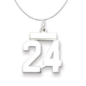 Celebrate your favorite sports player, lucky number or milestone date in your life with a prominent rhodium-plated sterling silver charm. Each polished number is approximately 16mm (5/8 inch) in length, which is finished with a 2mm top bar and a classic jump ring that will accommodate up to a 3mm chain. Includes a 1.25mm, 24 inch sterling silver cable chain.