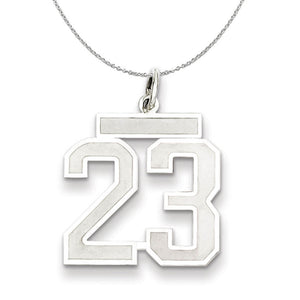Celebrate your favorite sports player, lucky number or milestone date in your life with a prominent rhodium-plated sterling silver charm. Each laser-cut satin and polished number is approximately 15mm (9/16 inch) in length, which is finished with a 3mm top bar and classic jump ring that will accommodate up to a 3mm chain. Includes a 1.25mm, 20 inch sterling silver cable chain.