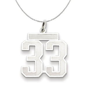 Celebrate your favorite sports player, lucky number or milestone date in your life with a prominent rhodium-plated sterling silver charm. Each laser-cut satin and polished number is approximately 15mm (9/16 inch) in length, which is finished with a 3mm top bar and classic jump ring that will accommodate up to a 3mm chain. Includes a 1.25mm, 20 inch sterling silver cable chain.