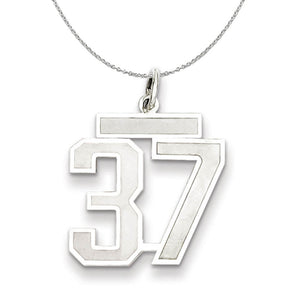 Celebrate your favorite sports player, lucky number or milestone date in your life with a prominent rhodium-plated sterling silver charm. Each laser-cut satin and polished number is approximately 15mm (9/16 inch) in length, which is finished with a 3mm top bar and classic jump ring that will accommodate up to a 3mm chain. Includes a 1.25mm, 20 inch sterling silver cable chain.