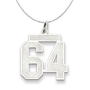 Celebrate your favorite sports player, lucky number or milestone date in your life with a prominent rhodium-plated sterling silver charm. Each laser-cut satin and polished number is approximately 15mm (9/16 inch) in length, which is finished with a 3mm top bar and classic jump ring that will accommodate up to a 3mm chain. Includes a 1.25mm, 20 inch sterling silver cable chain.