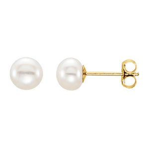 Nothing compares to the beauty and classic sophistication of pearls, the gem of the water and always appropriate. These near-round white freshwater cultured pearls range in size from 5 to 6mm and are affixed to a 14k yellow post with a friction back. Due to the nature of pearls, colors may not match what is shown. Gemstone treatment: bleached.