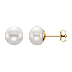 Nothing compares to the beauty and classic sophistication of pearls, the gem of the water and always appropriate. These near-round white freshwater cultured pearls range in size from 8 to 9mm and are affixed to a 14k yellow post with a friction back. Due to the nature of pearls, colors may not match what is shown. Gemstone treatment: bleached.