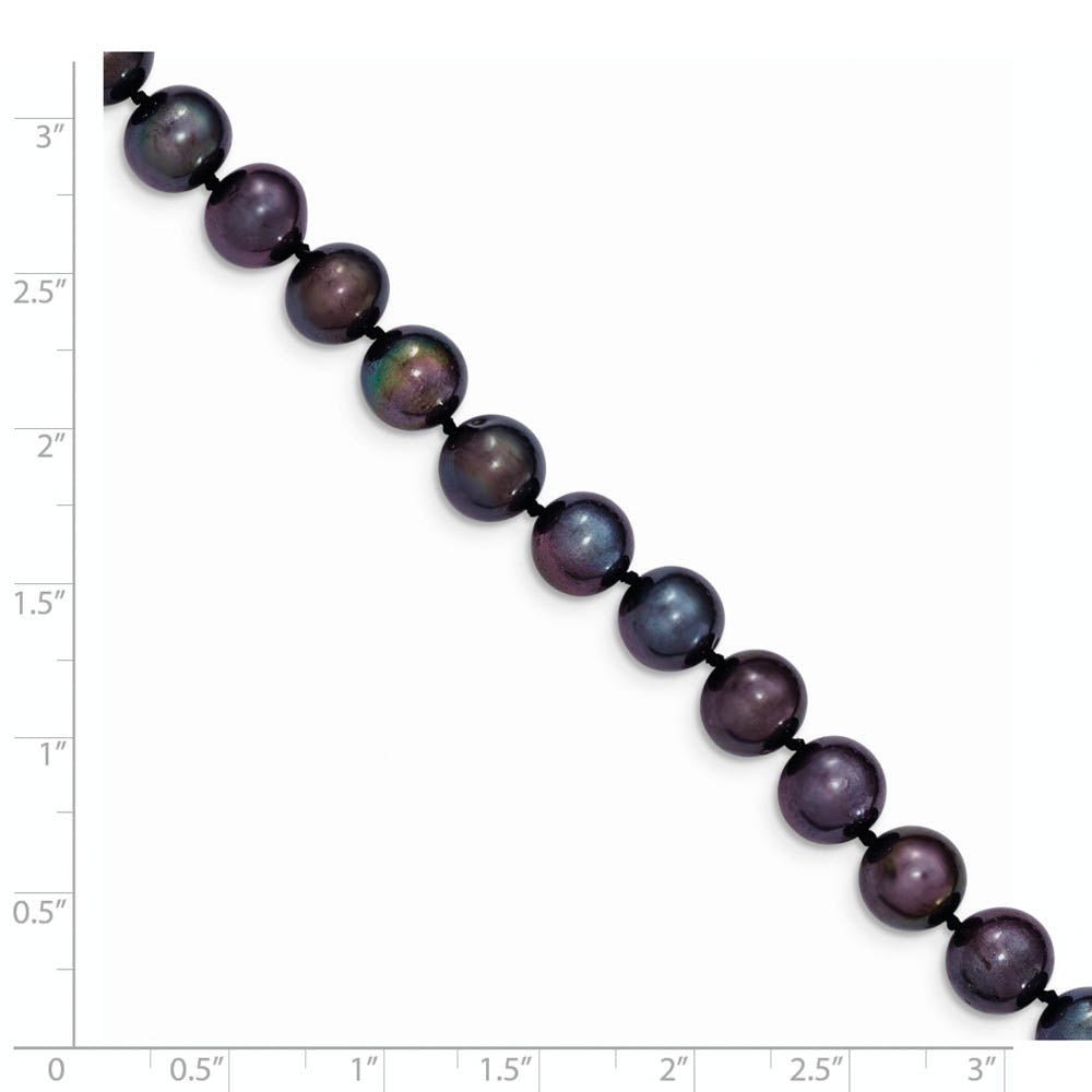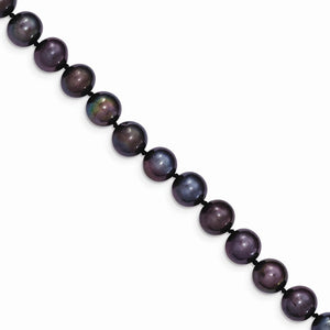 Nothing compares to the beauty and classic sophistication of pearls, the gem of the water and always appropriate. This 20-inch black freshwater cultured pearl necklace features 8 to 9mm near round pearls single knotted by polyester thread and a 14k yellow gold pearl clasp. Due to the natural of pearls, please allow for slight variations in size and color. Gemstone treatment: dyed.