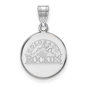 It is time to celebrate your favorite Major League Baseball (MLB) team, the Colorado Rockies! We are a certified retailer, and this authentic women's medium laser-etched pendant is officially licensed. It is created from rhodium plated 10k white gold and approximately 15mm in width (9/16 inch or smaller than a dime). Chain not included. Made in the U.S.A. This item is not currently in-stock. Once you place your order, please allow us 5 to 7 business days to make it for you.