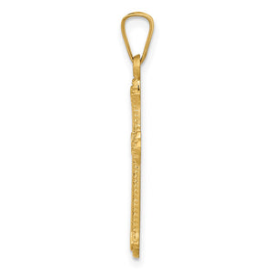 Celebrate and honor all special occasions with jewelry of religious significance! Our collection of spiritually inspired designs that show faith, hope and devotion are perfect for commemorating life's milestones. This fleur de lis cross pendant crafted in 14k yellow gold features a hollow, polished and textured design. The approximate size is 16mm (5/8 inch) in width by 33mm (1 5/16 inch) in length with the bail. This item does not include a chain.