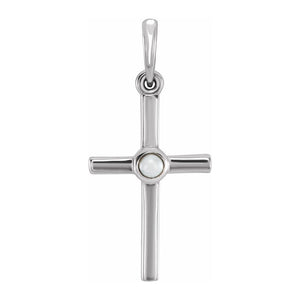Celebrate and honor all special occasions with jewelry of religious significance! Our collection of spiritually inspired designs that show faith, hope and devotion are perfect for commemorating life's milestones. This small polished cross pendant created in rhodium-plated 14k white gold features a bezel set, half seed, 2mm freshwater cultured white pearl. It is approximately 11mm (7/16 inch) in width by 24mm (15/16 inch) in length with the bail. The chain passage dimensions of the bail are 6 x 3.5mm. This item does not include a chain. This is a made to order item and is estimated to ship in about 12 days. Please email service@theblackbow.com for more details.