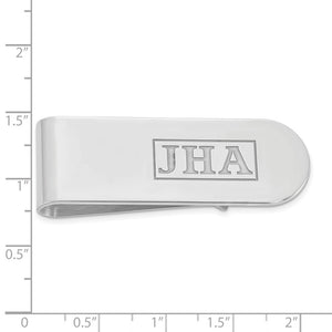 There's nothing more personal than a money clip with your initials on it. This personalized polished and laser-cut fold over money clip is crafted in rhodium-plated sterling silver and customized with up to 3 recessed upper-case letters to make this piece truly one of a kind. It is approximately 17 mm (5/8 inch) in width, 52mm (2 inches) in length and 0.89mm (35 gauge) in thickness. A slightly thicker option (1.27mm or 50 gauge) is available by special order; please email us for specific details and pricing. Please note personalized items are non-returnable. Made in the U.S.A. This is a made to order item and is estimated to ship in about 10 days. Please email service@theblackbow.com for more details.