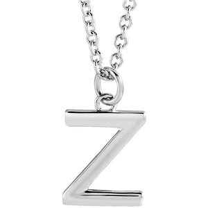 Platinum 9.5mm Small Block Initial A-Z Necklace, 18 Inch