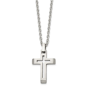 Mens Stainless Steel Brushed & Polished Voided Cross Necklace, 20 Inch