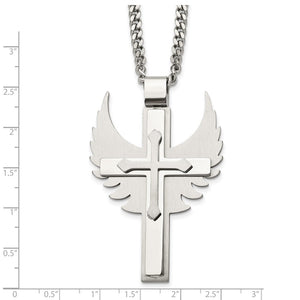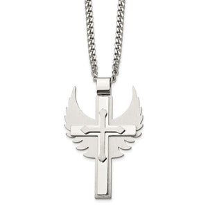 Mens Stainless Steel XL Winged Cross Necklace, 20 Inch - Black Bow Jewelry Company