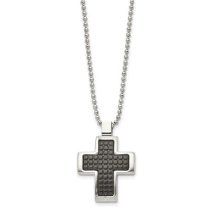 Stainless Steel Two Tone Brushed Polished Convex Cross Necklace, 22 In