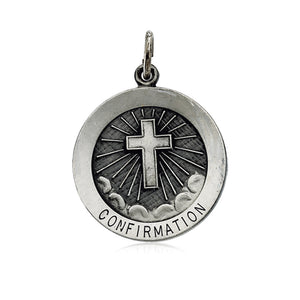 14k White Gold Confirmation Medal Disc Charm, 18mm