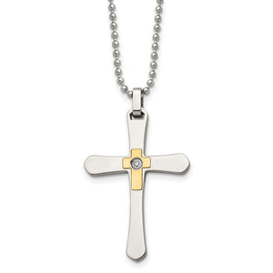 Stainless Steel, 14k Gold Plated and Diamond Accent Cross Necklace