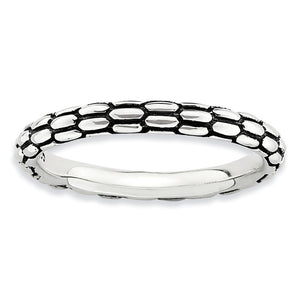 • Make it simple and stylish with bands of different textures, finished, widths and colors! This sterling silver band features a patterned design with an antiqued finish that measures 2. Mm wide. Guaranteed to fit together perfectly with all of the mix and match Stackable Expressions rings. This item is backordered. Please allow 7-10 business days for delivery