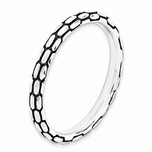 • Make it simple and stylish with bands of different textures, finished, widths and colors! This sterling silver band features a patterned design with an antiqued finish that measures 2. Mm wide. Guaranteed to fit together perfectly with all of the mix and match Stackable Expressions rings.