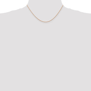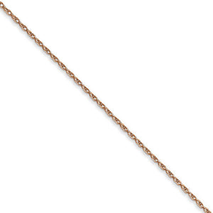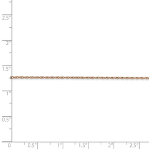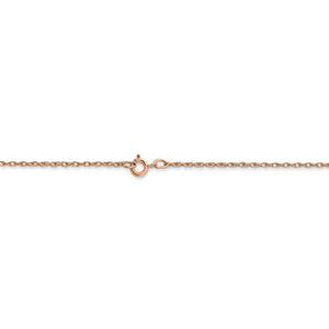 Classic appeal with a modern design, this solid-link cable rope chain created from polished 14k rose gold is finished with a spring ring clasp and perfect for displaying lightweight charms or pendants. This thin delicate necklace chain is 0.7mm in width by 18-inches in length.
