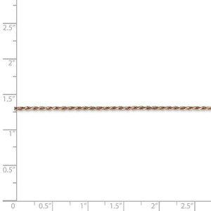 Twisting strands of 14k rose gold form an intricate spiral pattern on this fabulous rope chain accented with a diamond-cut finish. Designed to provide the perfect combination of beauty, strength and integrity, this 1.5mm classic chain is a must have fashion accessory! 7 inches in length.