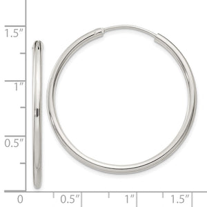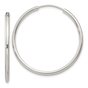 2mm, Sterling Silver, Endless Hoop Earrings - 35mm (1 3/8 Inch) - Black Bow Jewelry Company