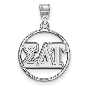 Sterling Silver Sigma Delta Tau Medium Circle Greek Letters Pendant