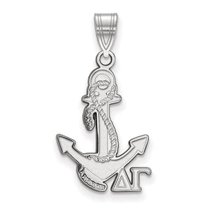 Show your greek life spirit with this Delta Gamma Sorority pendant. It is crafted with rhodium plated sterling silver and without the bail is 20mm in height and 15mm in width (0.79 in x 0.59 in). With the bail, the measurements are 26mm in height and 15mm in width. We are a certified Collegiate jewelry retailer and this authentic item is licensed by the Delta Gamma Sorority and Greek Life. This pendant is made the USA. Chain not included. This item is not currently in-stock. Once you place your order, please allow us 5 to 7 business days to make it for you.