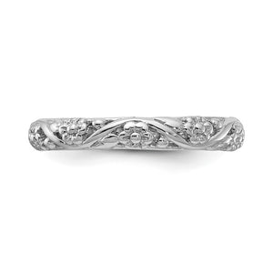 Make it simple and stylish with bands of different textures, finished, widths and colors! This rhodium-plated .25 sterling silver stackable band features an flower pattern design with a polished finish and measures 3. Mm wide. Wear it alone or in meaningful combinations. Guaranteed to fit together perfectly with all of the mix and match Stackable Expressions rings.