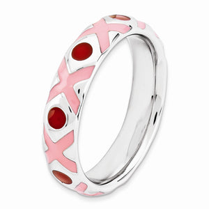 • Use enamel bands to effortlessly create a meaningful theme or message. Featuring an unending xoxo design created from pink and red enamel this 4. Mm sterling silver band is finished with tarnish resistant rhodium plating so it will retain its bright white finish. Guaranteed to fit together perfectly with all of the mix and match Stackable Expressions rings.