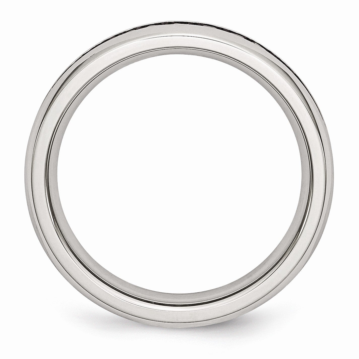 • Wear alone or mix with other stack rings to create your own look! This 4mm eternity band fashioned from polished 316L stainless steel is channel set with dark pink cubic zirconia gemstones all the way around.