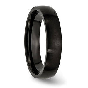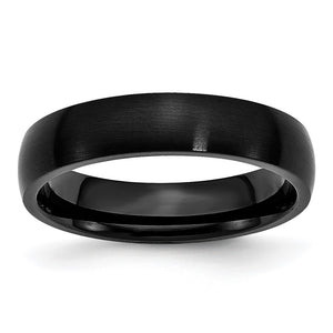 A traditional band set in black-plated 316L stainless steel featuring a classic dome style with a brushed finish and a standard fit shank. This unisex ring is approximately 5mm in width and is suitable for engraving.