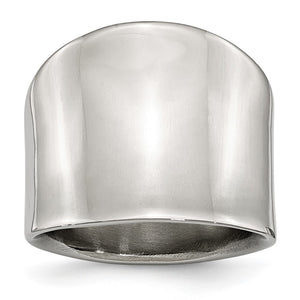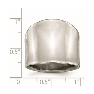 Big, Bold, and Impressive! Cocktails rings are all about expressing your individual style and personality. This one features a polished concave design with a tapered fit created from stainless steel. The top width is approximately 17mm (5/8 inch). Available in whole sizes only 6-9.